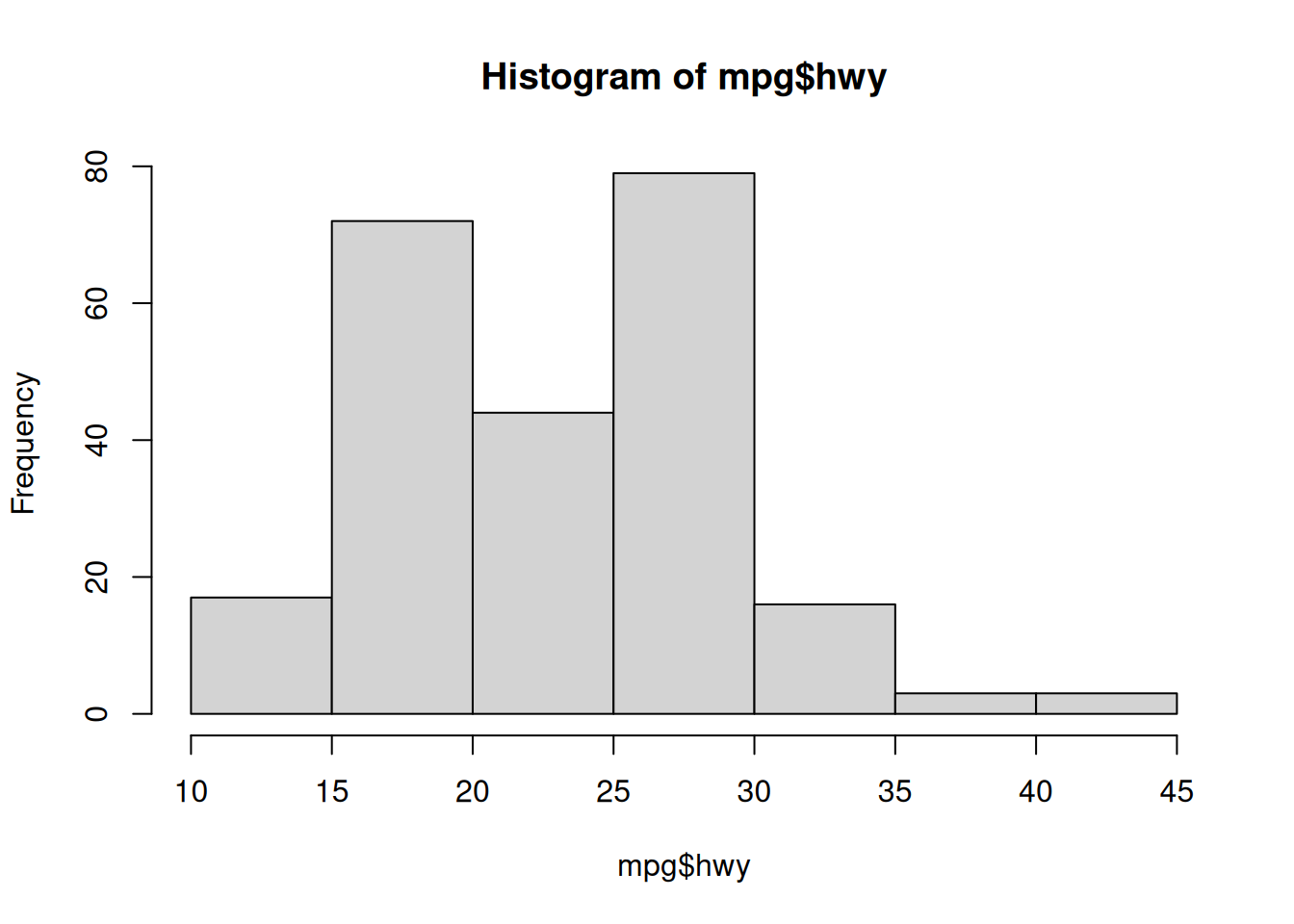 In theory, all of your plotting needs can be accomplished with functions in base R. However, these graphics are not easy to customize and it’s very tedious to create publication-quality graphics. For these reasons, base R graphics are rarely taught but I believe they still serve a purpose in the data exploration workflow. Base R graphics are extremely fast and provide some simple tools for quick viewing of your data.