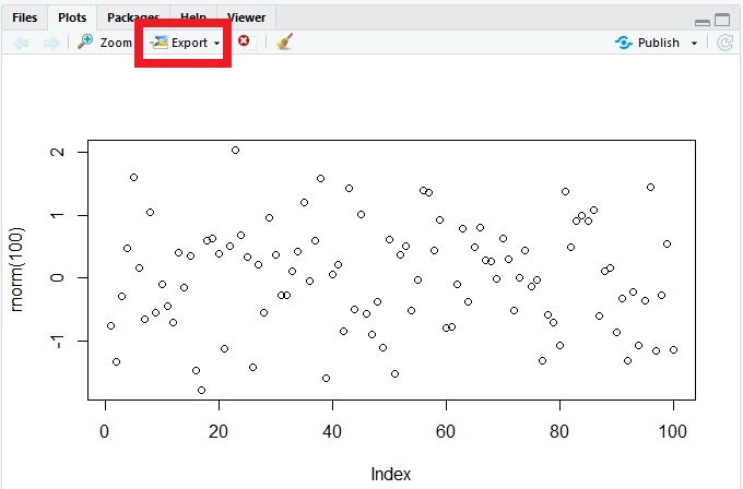 A quality plot deserves to be saved and shared. As you can imagine, there are several ways to save a plot in RStudio. The easiest way (which I don’t recommend) is to use the export feature from the plot viewing pane.