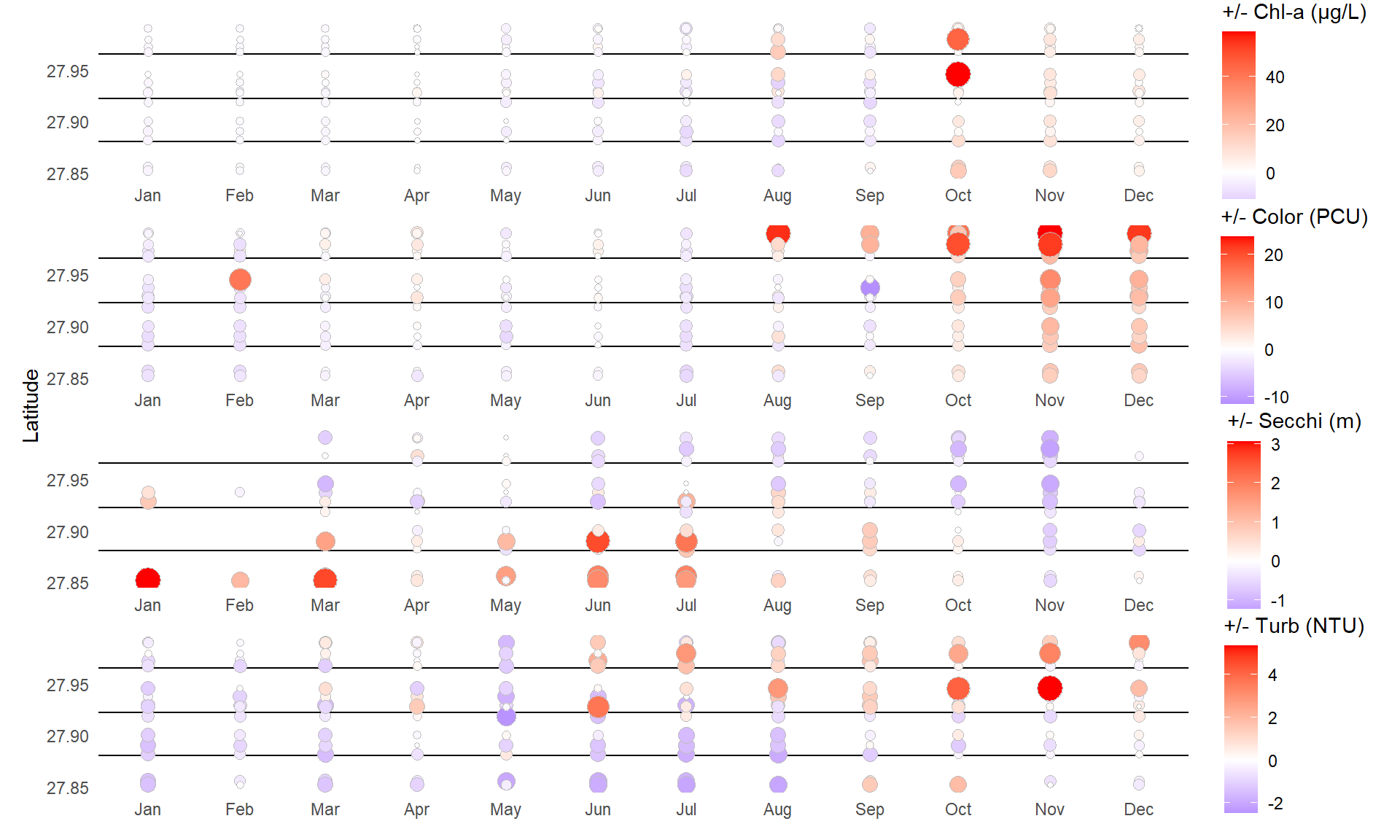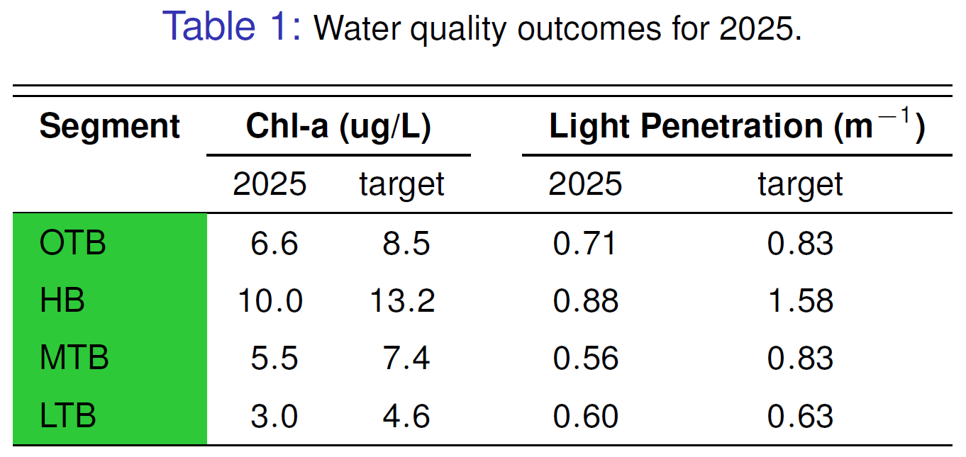 - All segments provisionally meet chlorophyll and light attenuation management targets, regulatory thresholds