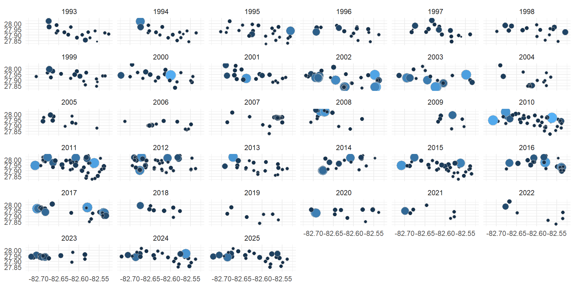 - Annual summary of Fecal Indicator Bacteria (FIB) data at major inflows to each bay segment